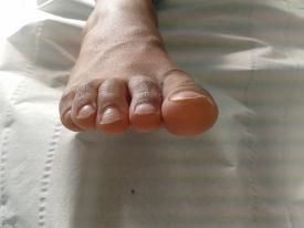Nous contrôlons le bon positionnement des orteils et corrigeons les éventuels mal positions par strapping.